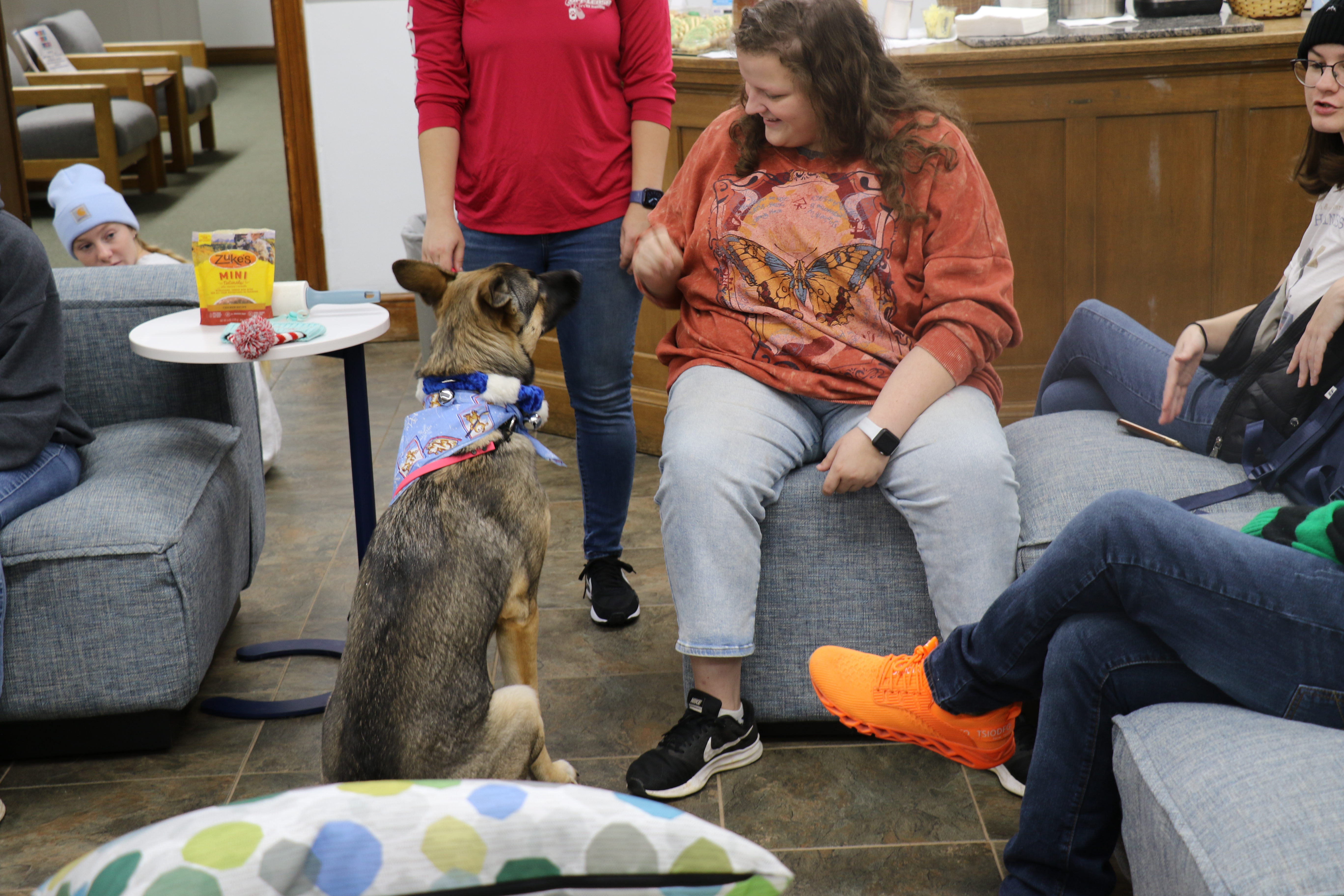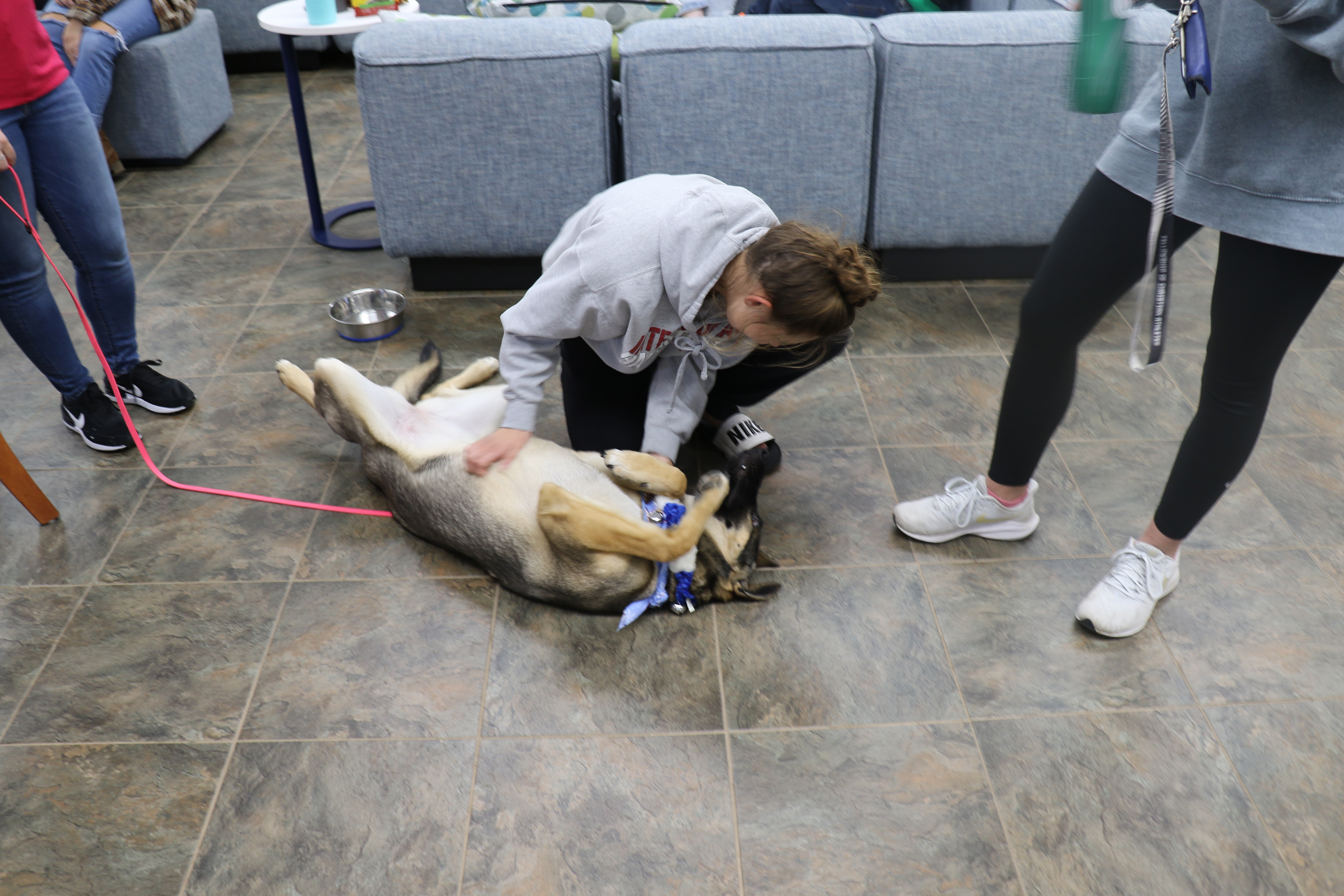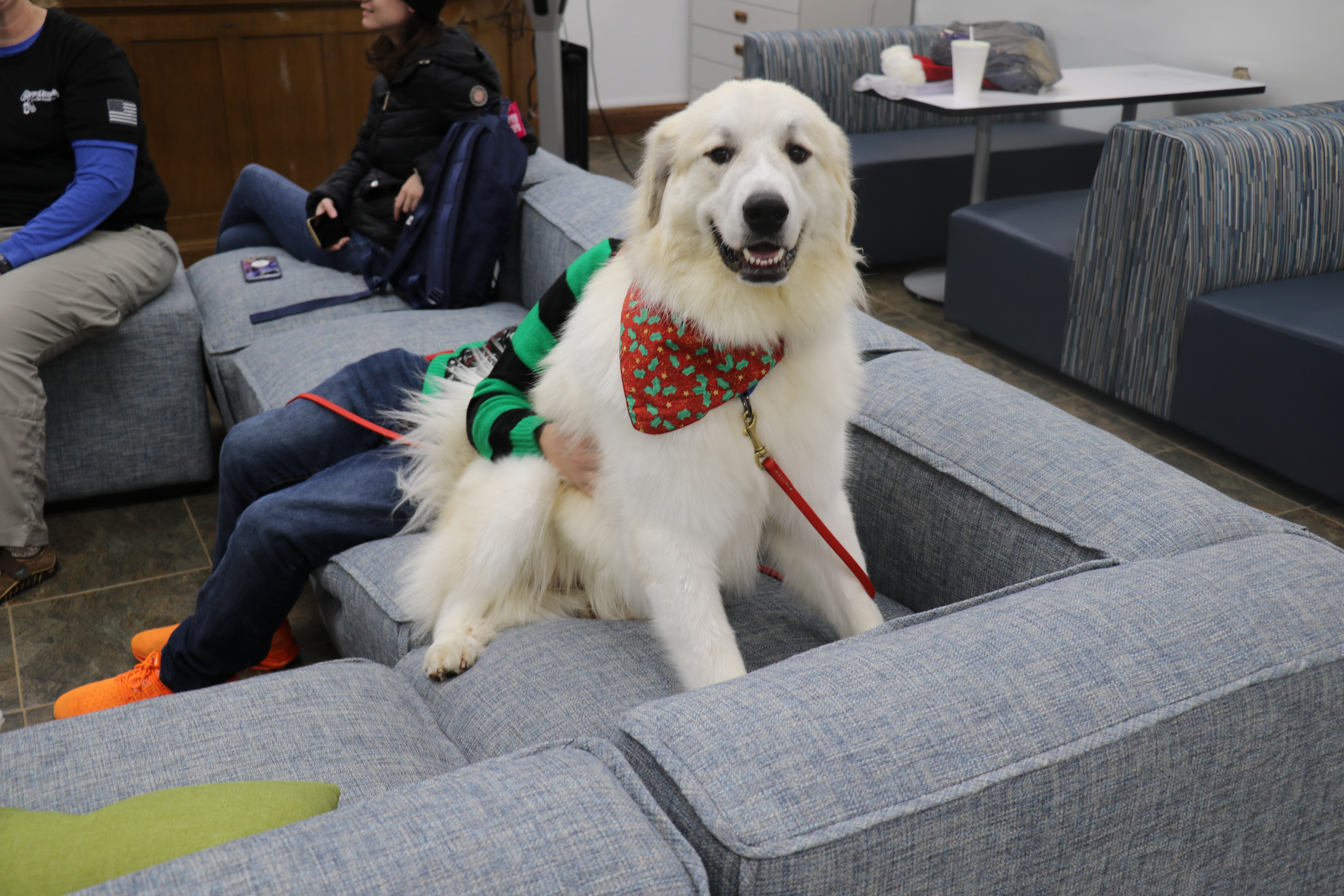 With their charm and neediness for attention these 4-legged heroes come to give us relief and comfort from the stressors of finals. Cuddling, scratching, and treat feeding are all encouraged by Agnus and Saries when on duty.