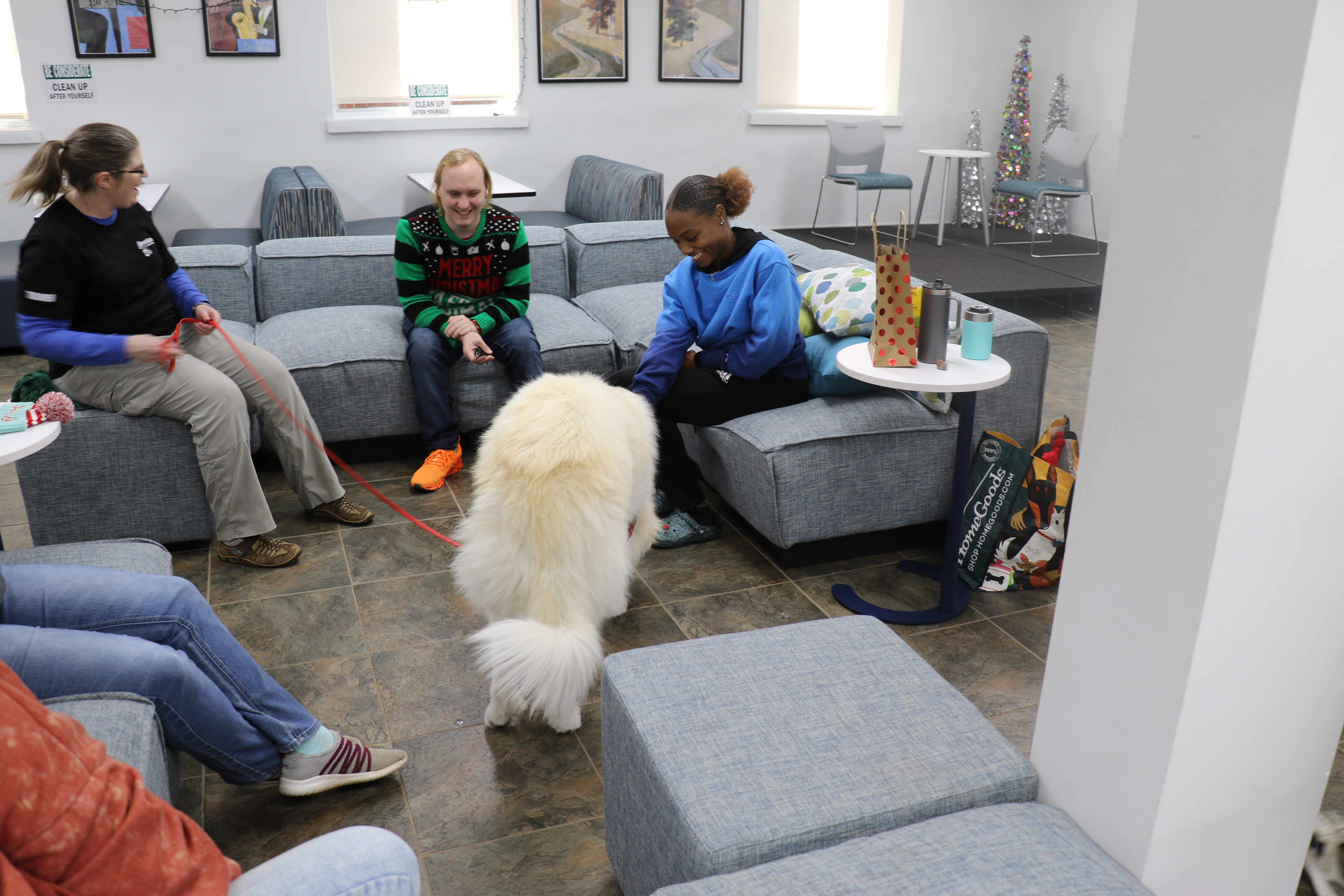 Here at Tennessee Wesleyan University, once a semester right before finals week, four legged heroes come to cure us of our stress and anxieties. This semester these heroes came in the form of a 10-month-old St. Pyrenees named Agnus and a 11-month-old German Shepherd named Saries.