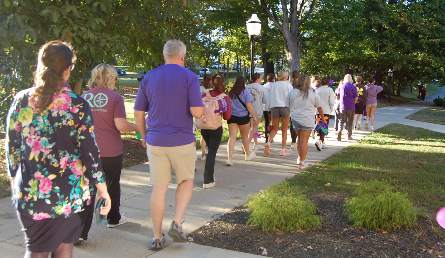 The walk at Tennessee Wesleyan University took place on Tuesday evening, October 22nd. Many students and local citizens gathered at the campus to listen to a guest speaker, Astrid Maples, and member of Sigma Kappa, Christian Jackson, tell their personal stories and reasonings for supporting the walk. The walk started and ended on the TWU campus, making it’s way through downtown Athens.